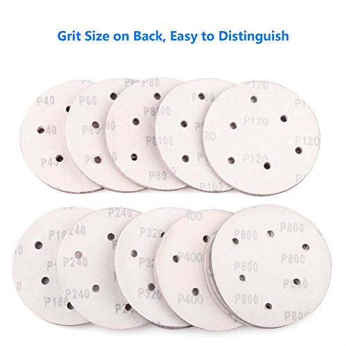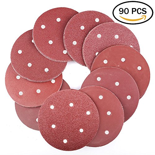 5 Inch 6-Hole Hook and Loop Sanding Discs by LotFancy - 90PCS 40/60/80/100/120/180/240/320/400/800 Grit Assorted Orbital Sander Round Sandpaper