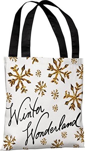 One Bella Casa Winter Wonderland Gold Snowflakes Tote Bag by Timree Gold, 18"x 18", White/Gold