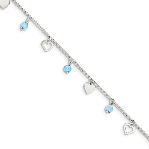 -. Title : Sterling Silver 9in 9" Polished Heart and Blue w/ 1in ext. Anklet"