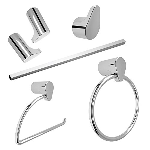 - Kit includes single robe hook, toilet paper holder, 24-in towel bar, towel ring
