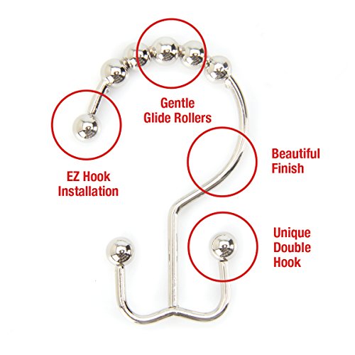 ★ GLIDES EFFORTLESSLY ★ Our double-hook / double-hung rings roll smooth, gliding your shower curtain open with even the gentlest of tugs. Cuts down on wear and tear of your shower curtain and reduces annoying noise.