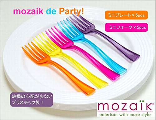 mozaik (mosaic) plastic colorful mini fork five and Mini 5 plates MZCMPF5MX