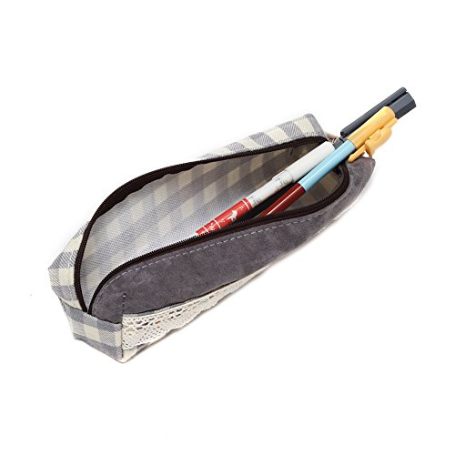 Damara Lattice Canvas Fabric Pen Bags Pencil Holders,Turquoise