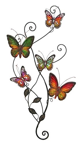 -. Feature : Metal Wall Decor Butterfly Plaque Sculpture / Material: Metal / Features 5 butterflies and leaf design to create a natural look / Measures 29" Height x 15" Wide / Fully Assembled