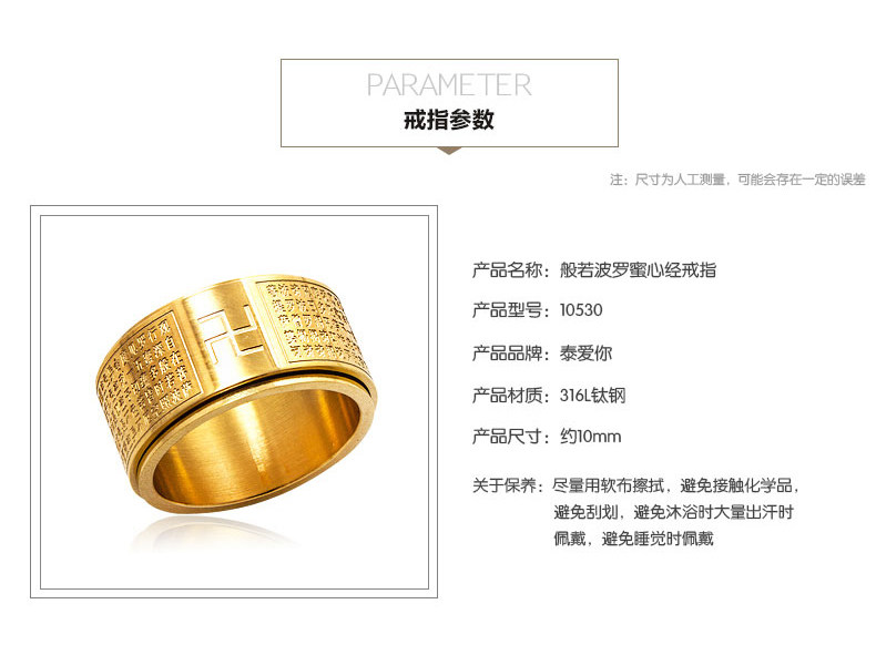 波罗蜜心经戒指男士霸气钛钢佛教个性饰品潮人指环 可转动