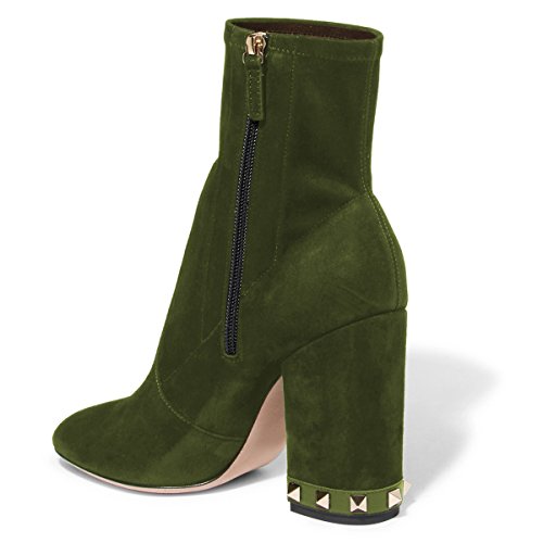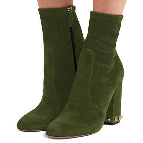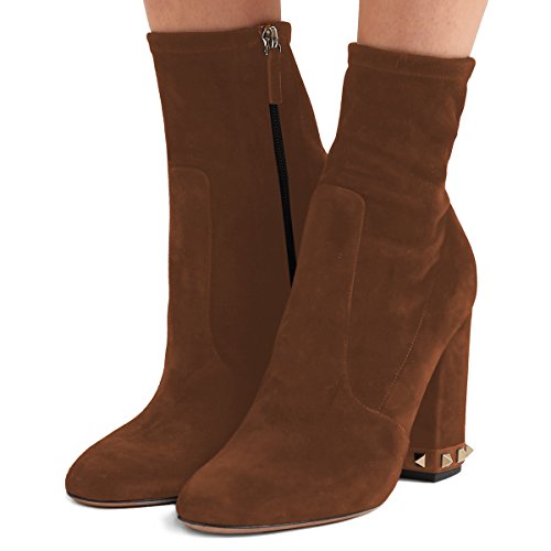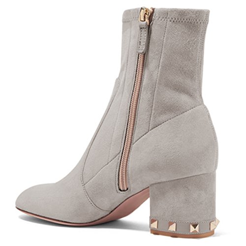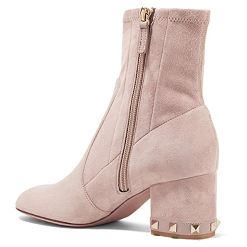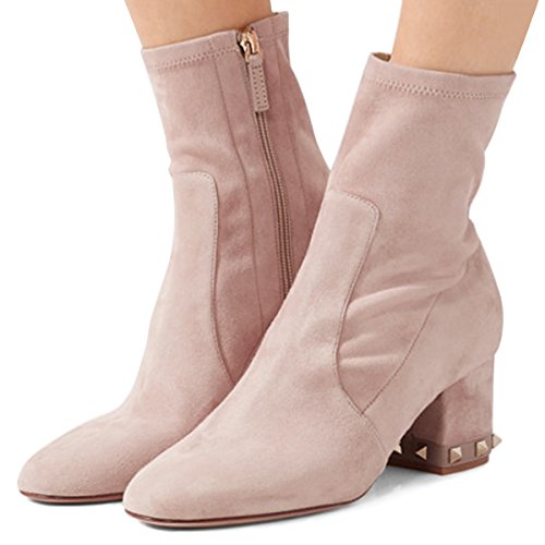 (XYD)/Men's/Lace-Ups/DIRECT FROM USA/XYD Women Fashion Round Toe Suede Ankle Boots Studded Chunky Heel Zipper Side Bootie Shoes