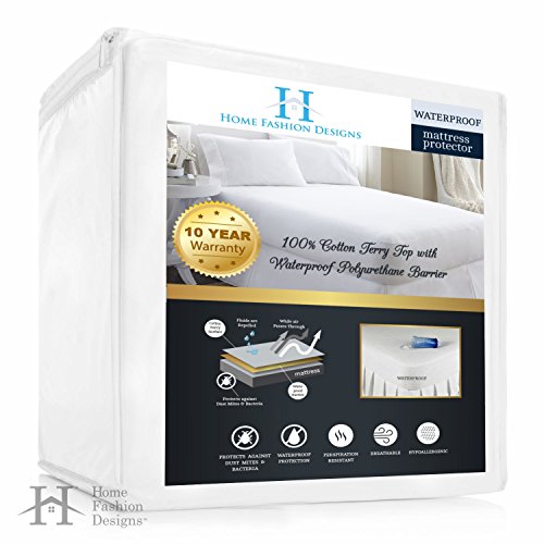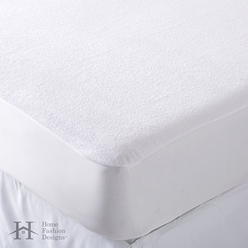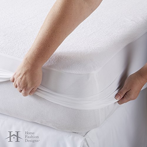 -. Feature : GREAT VALUE, AFFORDABLE P.R.ICE: This topline mattress protector provides superior comfort and protection. It's breathable, noiseless and WILL NOT CHANGE THE FEEL OF YOUR MATTRESS. Use it in your bedroom, guest room, dorm room, RV, vacation home or anywhere else to preserve your mattress. / HIGH-QUALITY MATERIAL: The 100% cotton 120 GSM hypoallergenic terry top is soft to the touch. Underneath, there's a waterproof polyurethane barrier to shield your mattress and keep it looking and feeling like new. PERFECT FIT FOR ANY BED: Available in Twin, Full, Queen and King sizes. See below for exact measurements. This DEEP POCKET mattress protector has an elasticized skirt that FITS MATTRESSES UP TO 21 INCHES DEEP. / COMPLETE BED BUG AND ALLERGEN PROTECTION: Protects your mattress from allergens, dust mites, bacteria, perspiration, and fluids. Great for those with kids, pets, allergies, asthma, eczema or incontinence. HYPOALLERGENIC and 100% WATERPROOF. Incredibly EASY TO CARE FOR: machine wash, tumble dry, remove promptly. / 100% SATISFACTION GUARANTEED. 3-year WARRANTY! Customer satisfaction is of utmost importance to us. We're confident you'll love our products, but if you're not 100% SATISFIED, our customer service team will work with you to make it right! / IMPORTANT: This product is DISTRIBUTED IN THE USA in NEW CONDITION by the Home Fashion DesignsTM brand ONLY. Check "sold by" Home Fashion Designs to ensure authenticity. If your order arrives from an overseas shipper, it is NOT authentic. Upon receiving your order, LOOK FOR THE HOME FASHION DESIGNSTM TRADEMARK on packaging insert. We offer full refunds on items returned within 30 days; however this and all post-purchase customer service applies ONLY to new purchases from Home Fashion DesignsTM.