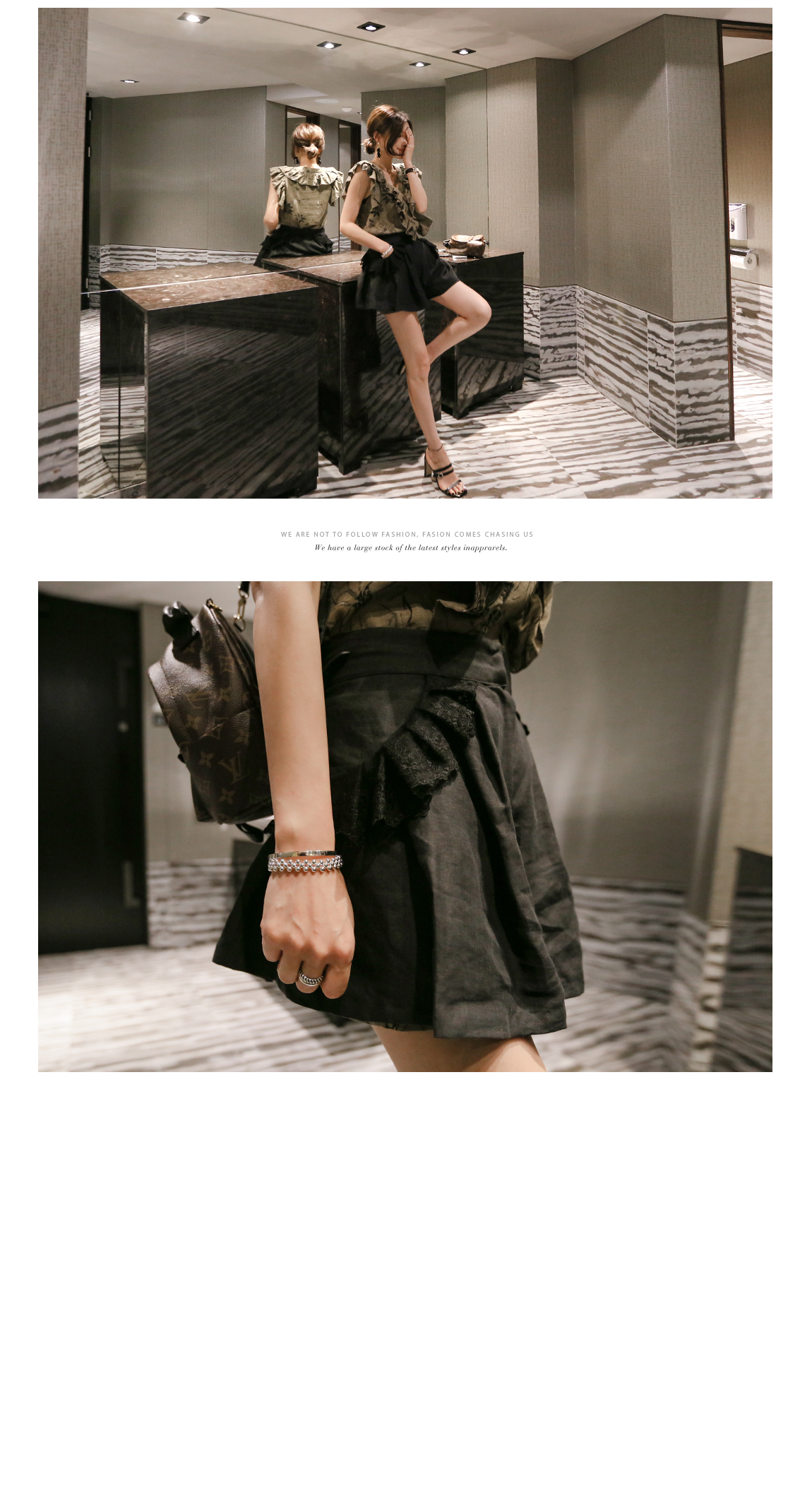 사이드의 레이스 디테일로 유니크한 포인트를 주었어요