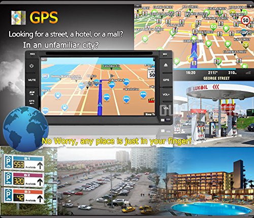-. Feature : NEW win 8 UI car cd player support Satellite navigation: GPS Processor ARM 11 and GPS map pre-loaded at a free standard 4GB map card for the North American(US, Canada, and Mexico). Dual Zone Function means it can play music or watch videos when navigation. You will find it easier to go to a new or complex place, get to where you want to go safely and on time. / This car stereo combines Bluetooth wireless music streaming and call-answering capability -- all into one convenient unit! Built-in Bluetooth and microphone allow you to enjoy hands-free calling and add another level of safety while on the road. Get rid of those extra cables, and enjoy crisp sound with a rapid wireless setup. / 6.2 inch HD Touch Screen Display: The Hi-Resolution digital display boasts a touch screen use as well as a user-friendly control interface. Also this double-din unit is easy to install and fit most cars. It is made to be able to fit in your dash for that professional installation look. / This car AM/FM radio loaded with 30 preset radio stations with last position memory, this new monitor is truly a great radio broadcaster and has the ability to work worldwide with excellent signal reception strength. Customize Your Sound and VideoEQ controls allow you to take full control over the sound of your mix. The picture configuration feature let you take control of your video by allowing you to customize your brightness, contrast and color. / Multiple Video and Audio InputsThe color LCD display allows you to watch all of your favorite video directly on the receiver. You can connect a variety of video and audio sources, including but not limited to: Backup Camera, AM/FM Radio, DVD/VCD/CD/CD-R/CD-RW, JPEG, MP3, MP4, AVI, WAV and More. In addition to this you can also connect your music via SD card or the AUX input.