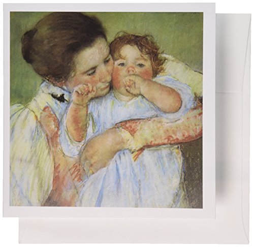 3dRose Mother and Child against a Green Background by Mary Cassatt - Greeting Cards, 6 x 6 inches, set of 12 (gc_169650_2)