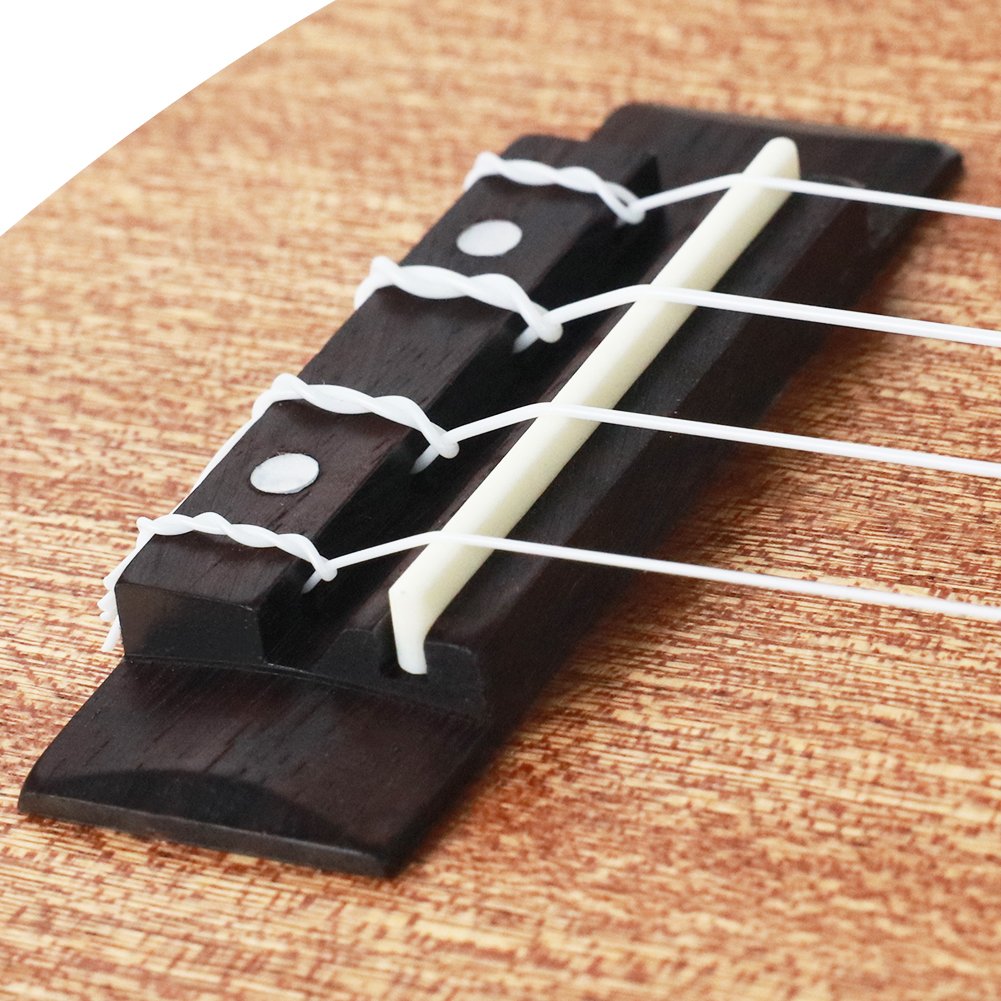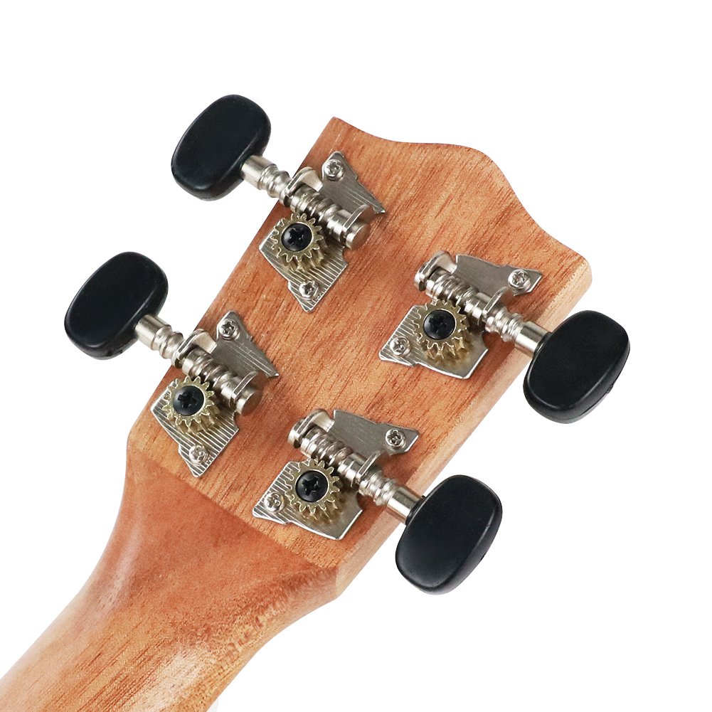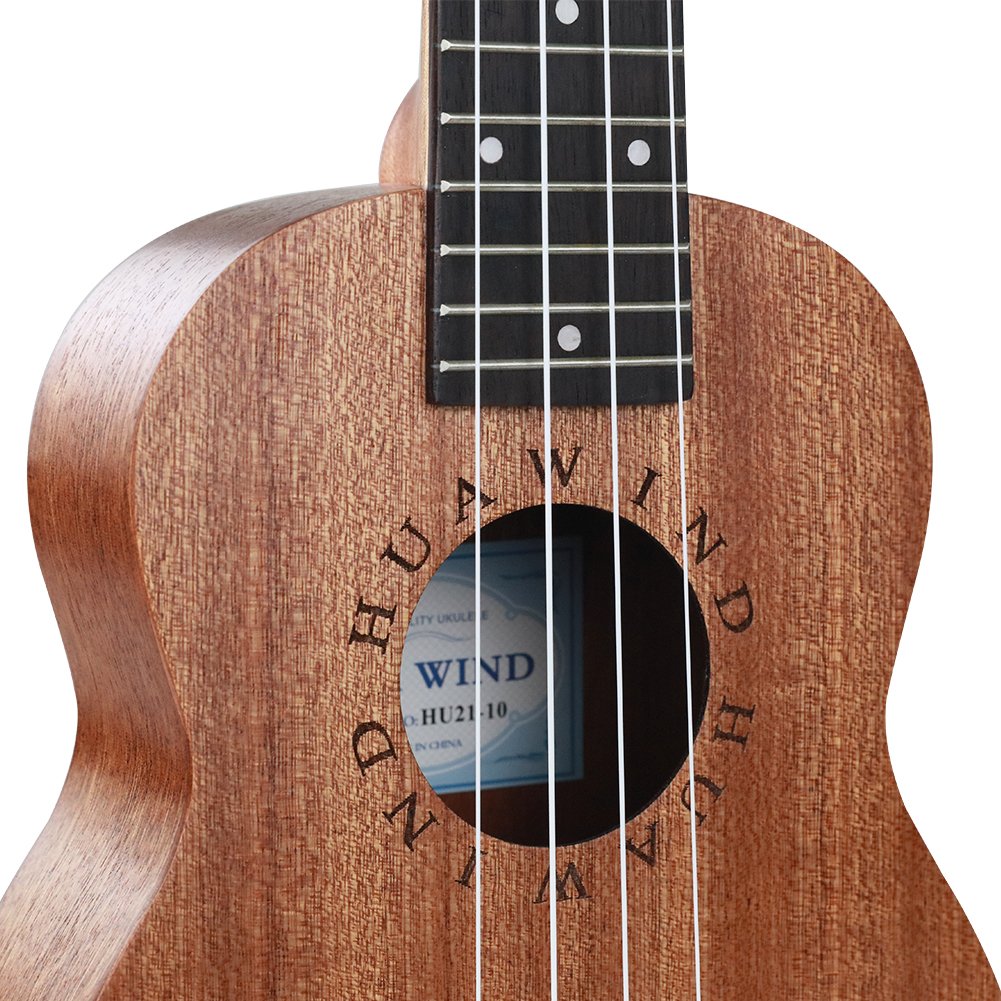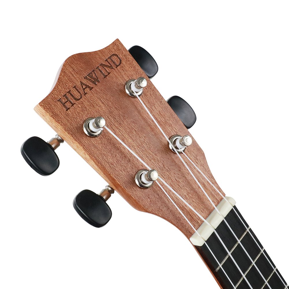 Ukulele adopts natural wood for body, bridge, neck, fingerboard, all.