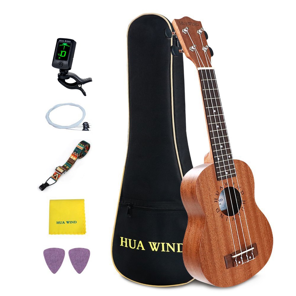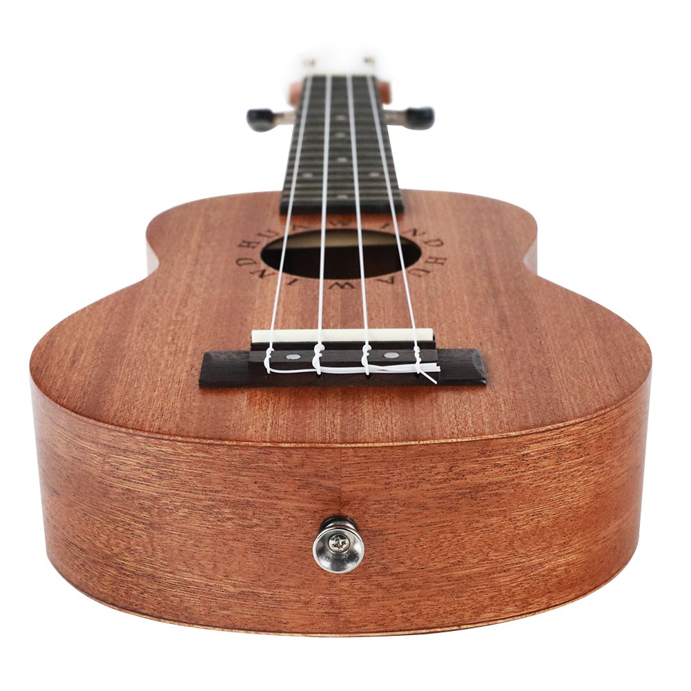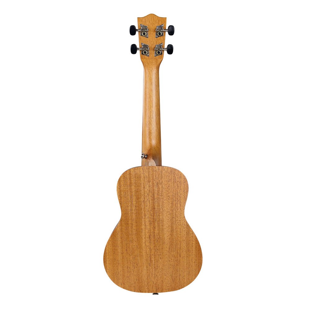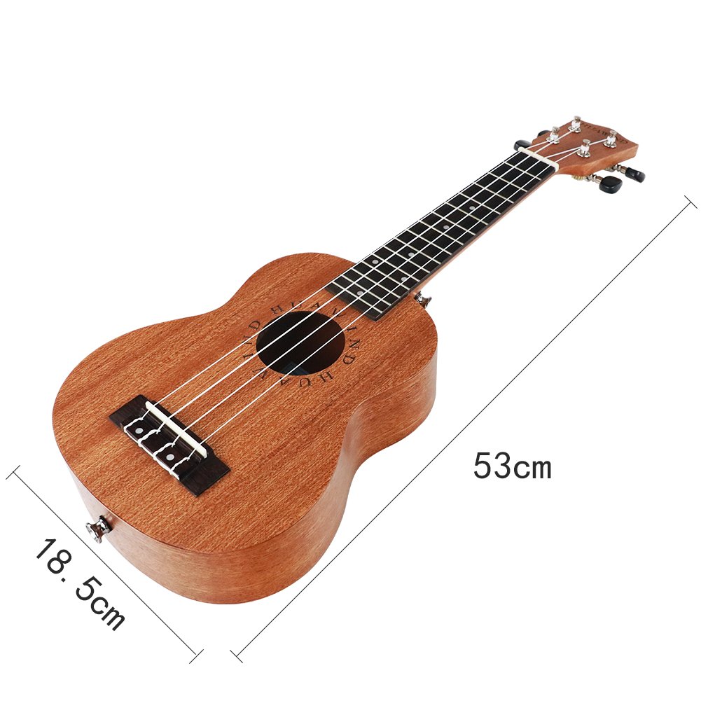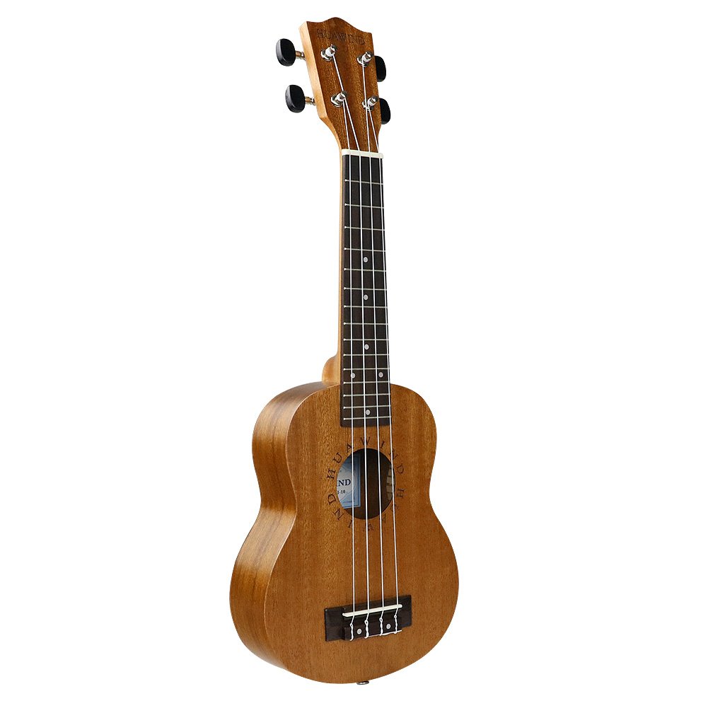 Ukulele adopts natural wood for body, bridge, neck, fingerboard, all.