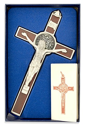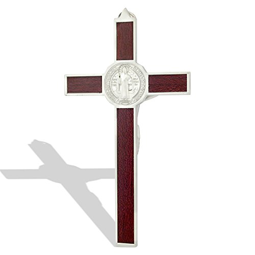 Deluxe Catholic Saint Benedict Wall Crucifix (Silver-Tone)