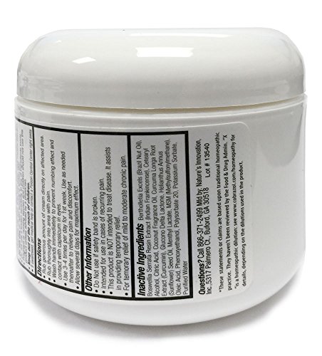 -. Feature : No Smell Analgesic, Anti-Inflammatory. Non-greasy, Deep Penetrating Cream. Works with Your Body to help it heal. / CobraZol quickly absorbs into the skin, and relief can be felt within 20-30 minutes, and lasts up to 8-10 hours. The more you use CobraZol, the more it works with your body to alleviate pain / Recommended for Use On Its Own or As A Complimentary Application along with Braces, Splints, Gloves, Ultrasound Treatment, Physical Therapy, Massage, etc. / CobraZol treats conditions that cause chronic pain, such as lower back pain, arthritis, joint pain, muscle aches, neck pain, and more. / New CobraZol Pain Relief Cream contains 8 of the worlds most powerful natural pain relievers and analgesics. Quick absorbing CobraZol Pain Relief Cream can be felt within 20-30 minutes and lasts 6-8 hours. The more you use, the more it works with your body to alleviate pain. Helps to relieve arthritis pain, joint pain, muscle aches and more. Plus, there is no smell!