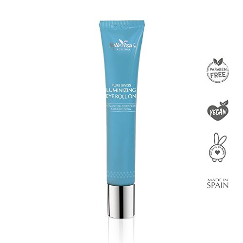 Innovative formula plumps and hydrates eye contours reducing crow´s feet, fine lines and wrinkles while also increasing firmness and elasticity around the delicate eye area. Belle Azul Pure Swiss Luminizing Eye Roll On, contains Active ingredients such as Argan Stem Cells which stimulate skin´s stem cell regeneration process leaving eyes looking brighter, more awake, refreshed and youthful