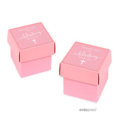 Andaz Press Mini Square Party Favor Box DIY Kit, Baptism, Thank You for Celebrating With Us, Pink, 20-Pack, For Religious, Christening, Communion Party...