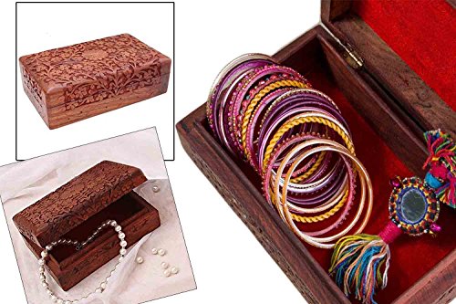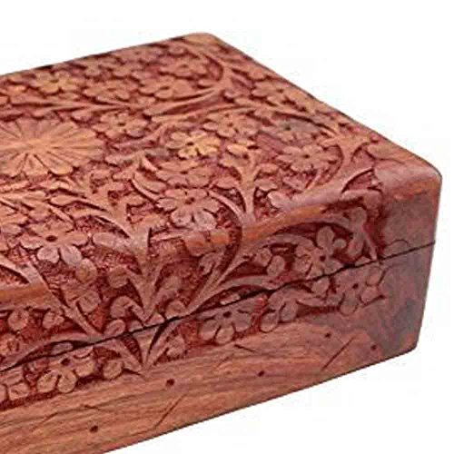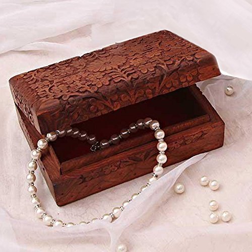 Valentine Day Special Present, Wooden Jewelry Box Carving Work Unique Flower Design 8 X 5 Inches,