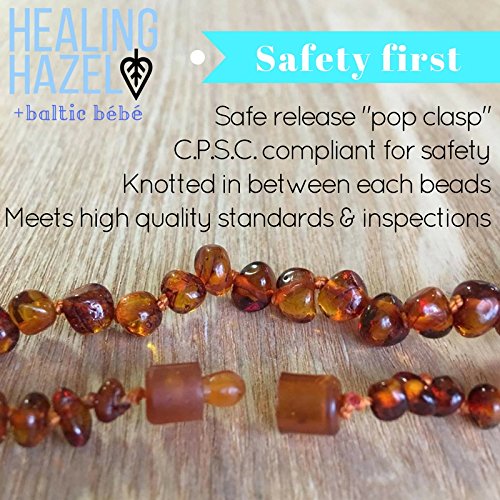 EASY TO USE | The pop clasp is easy to use and the amber beads are polished for a gentle smoothness on your baby’s skin.