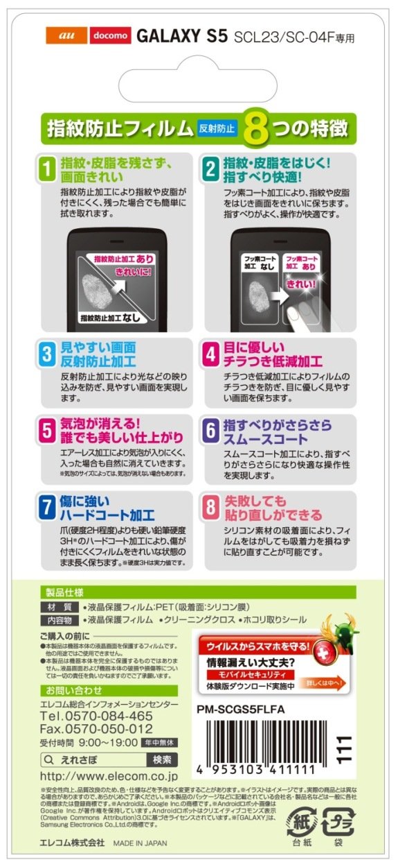 ■ au / docomo This airless type liquid crystal protective film protects the LCD screen of GALAXY S5 (SCL23 / SC - 04F) from scratches and dirt.