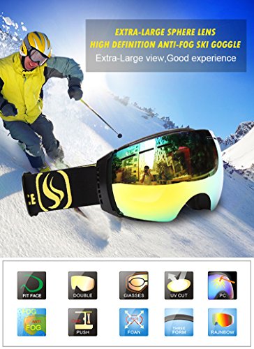 -. Feature : Anti-scratch Anti-fog protection spherical dual lens Provides 100% UVA protection. / Triple layer face foam provides multi-layer protection with moisture-wicking fleece / ?The Ventilation system allows airflow to prevent fogging / Helmet compatible