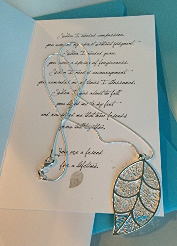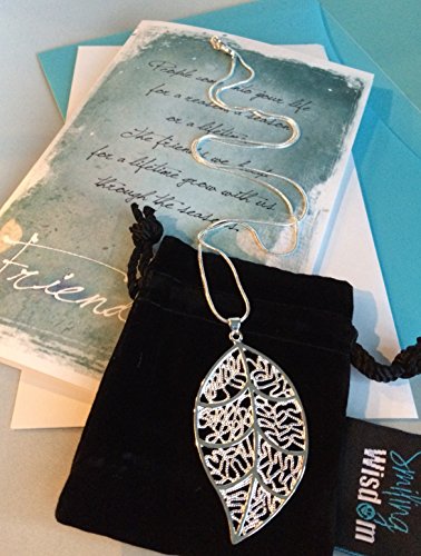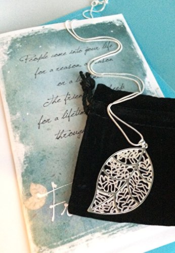 Smiling Wisdom - Silver Leaf Friendship Gift Set - Reason Season Lifetime Friendship Greeting Card - Sweater Necklace Leaf Pendant Sentiment - For Good or Best Friend - Pendant: 2.25x1.5, 24" Chain