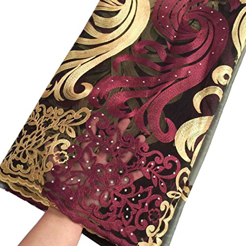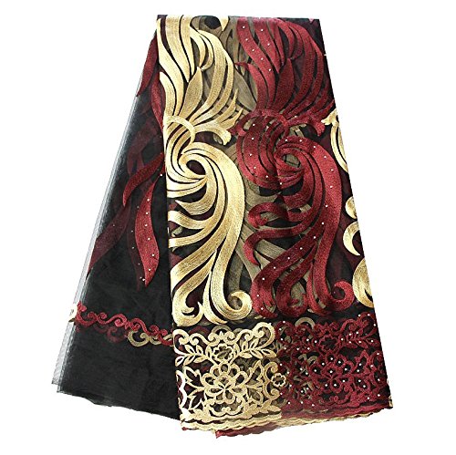 pqdaysun 5 Yards African Net Lace Fabrics Nigerian French Fabric Embroidered and Rhinestones Guipure Cord Lace F50378 (wine)