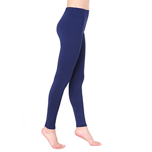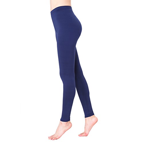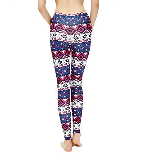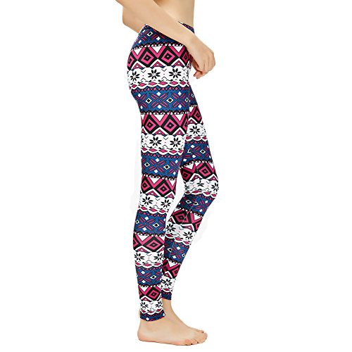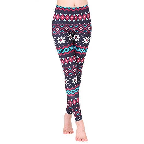 Ensasa Womens Autumn Winter Snowflake Graphic Printed Stretchy Leggings Pants, Pure Navy, Medium