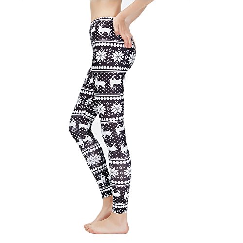 Ensasa Womens Autumn Winter Snowflake Graphic Printed Stretchy Leggings Pants (XX-Large, Black White Reindeer)