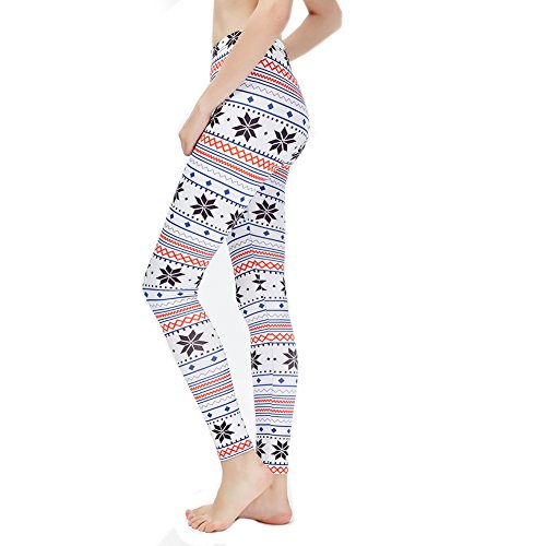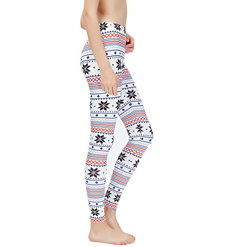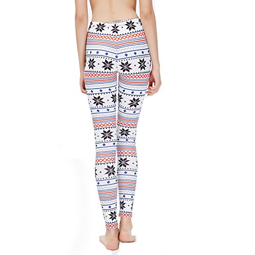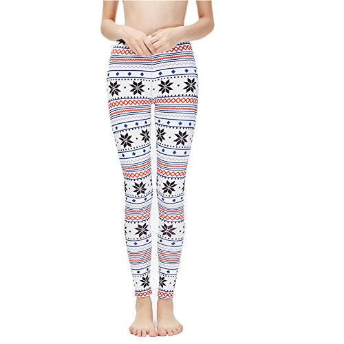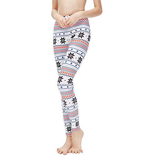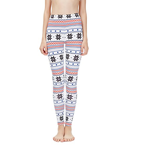Ensasa Womens Autumn Winter Snowflake Graphic Printed Stretchy Leggings Pants, White Flake Medium