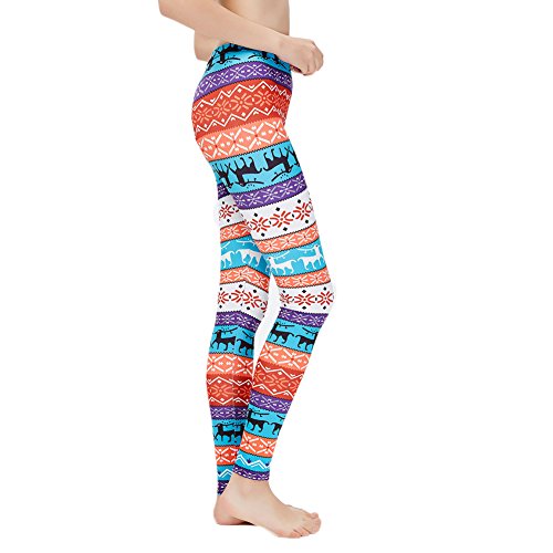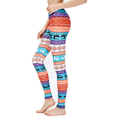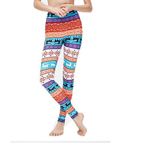 Ensasa Womens Autumn Winter Snowflake Graphic Printed Stretchy Leggings Pants, Blue Reindeer Medium