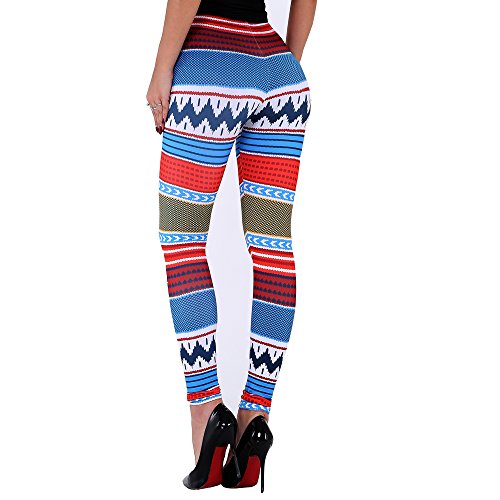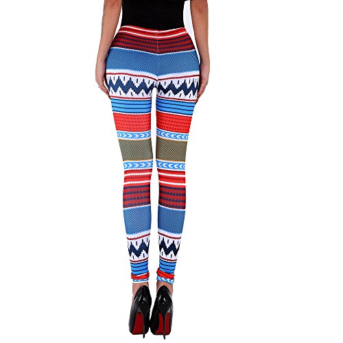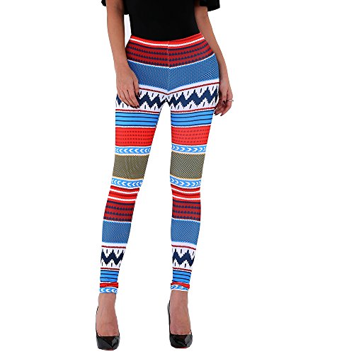 Ensasa Womens Autumn Winter Snowflake Graphic Printed Stretchy Leggings Pants (X-Large, Blue Stripe)