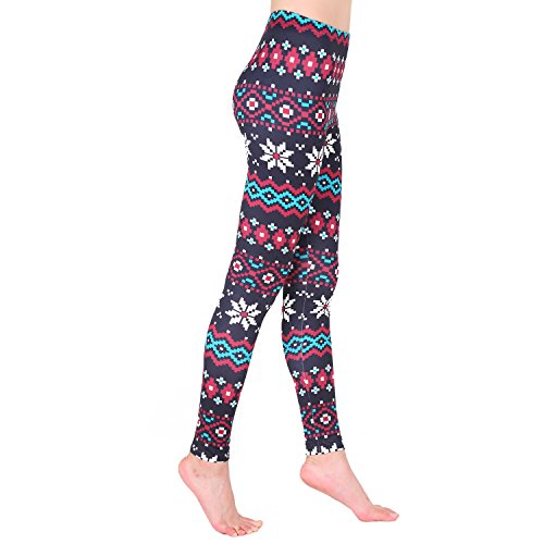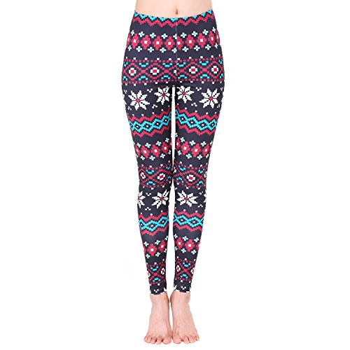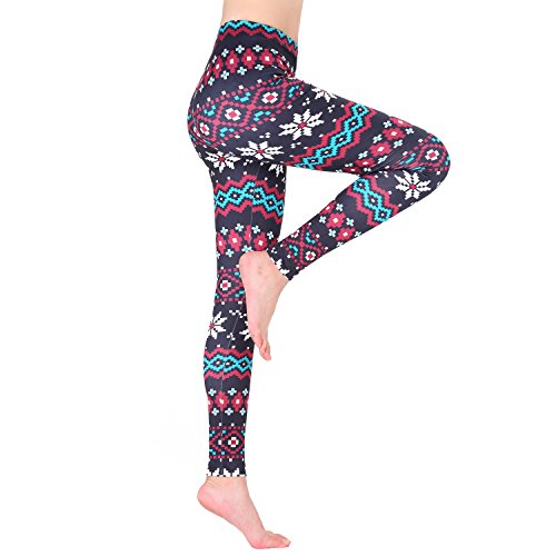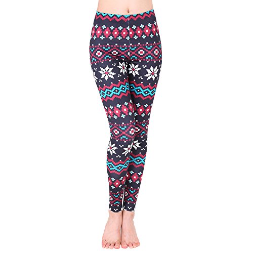 Ensasa Womens Autumn Winter Snowflake Graphic Printed Stretchy Leggings Pants, Black Red Flake Medium