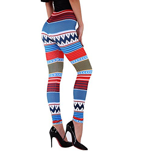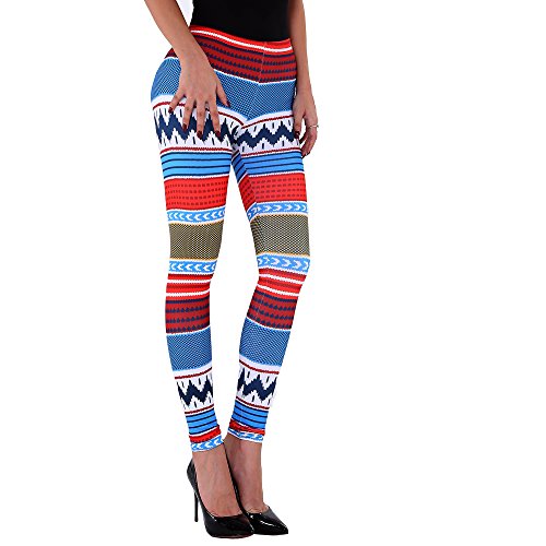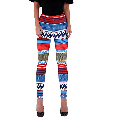 Ensasa Womens Autumn Winter Snowflake Graphic Printed Stretchy Leggings Pants (XX-Large, Blue Stripe)