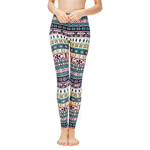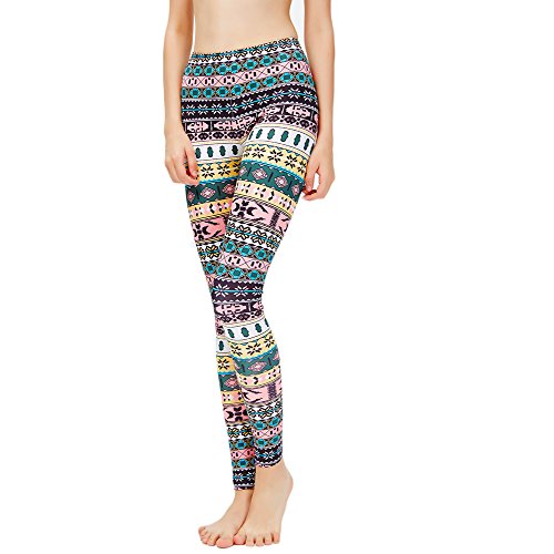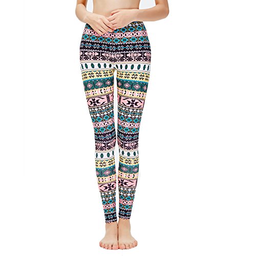 Ensasa Womens Autumn Winter Snowflake Graphic Printed Stretchy Leggings Pants (Small, Blue Stripe)