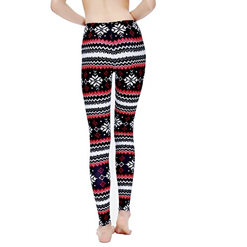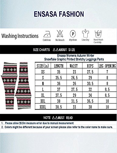 Ensasa Womens Autumn Winter Snowflake Graphic Printed Stretchy Leggings Pants (X-Small, Black White Red Flake)