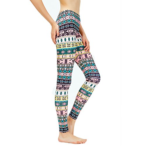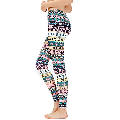 Ensasa Womens Autumn Winter Snowflake Graphic Printed Stretchy Leggings Pants (Small, Pink)