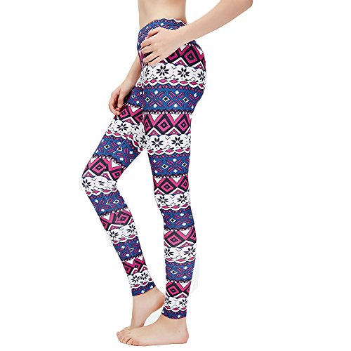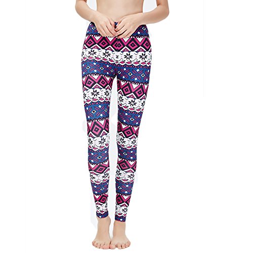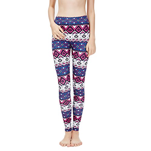 Ensasa Womens Autumn Winter Snowflake Graphic Printed Stretchy Leggings Pants, Pure Blue, Medium