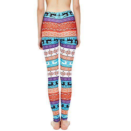Ensasa Womens Autumn Winter Snowflake Graphic Printed Stretchy Leggings Pants (X-Large, Orange Flake Reindeer)