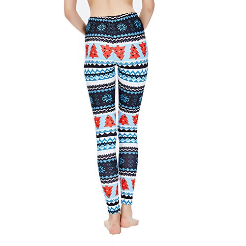 Ensasa Womens Autumn Winter Snowflake Graphic Printed Stretchy Leggings Pants (X-Small, Blue Christmas Tree)