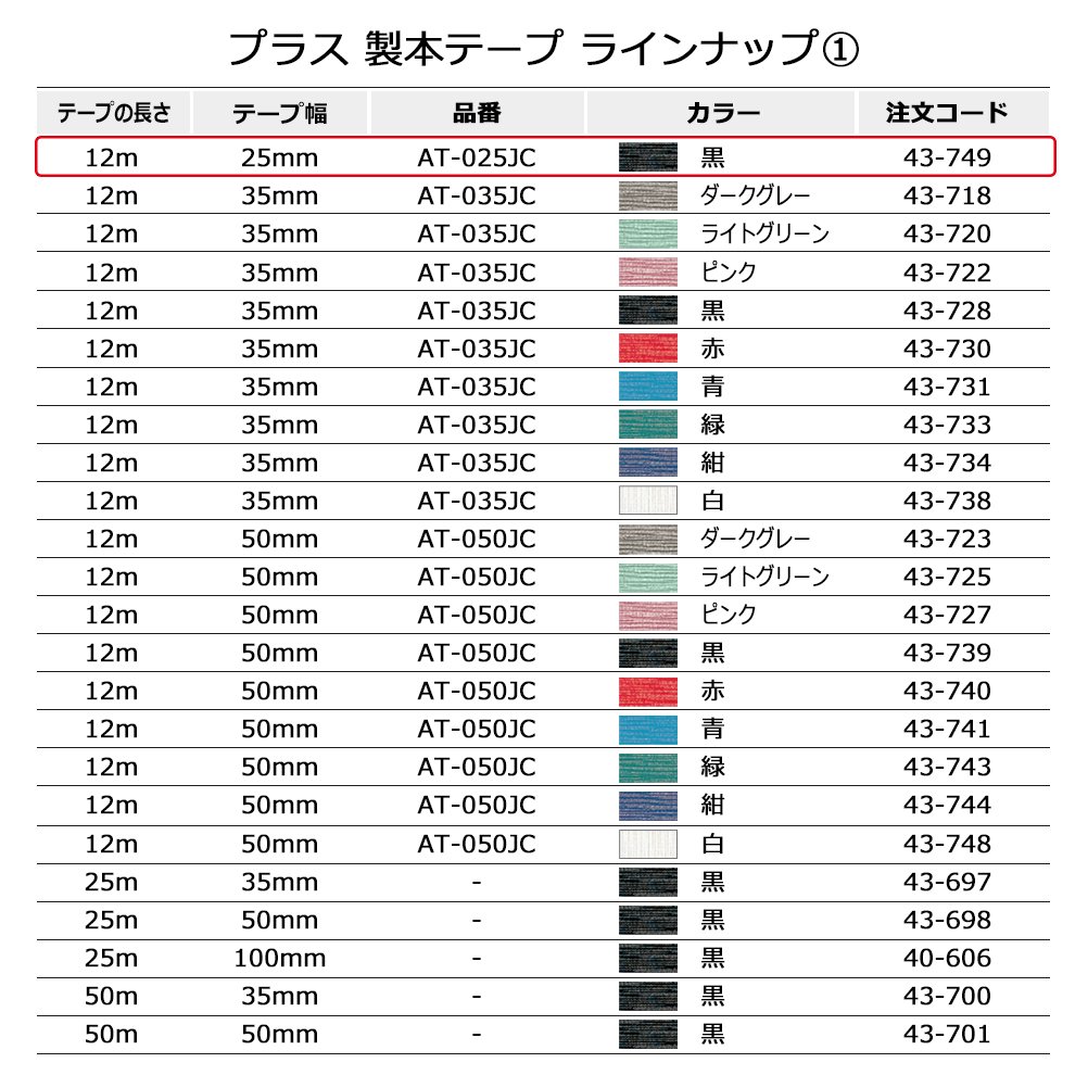 Plus binding tape paper cloth tape AT-025JC black 25mm × 12m 43-749