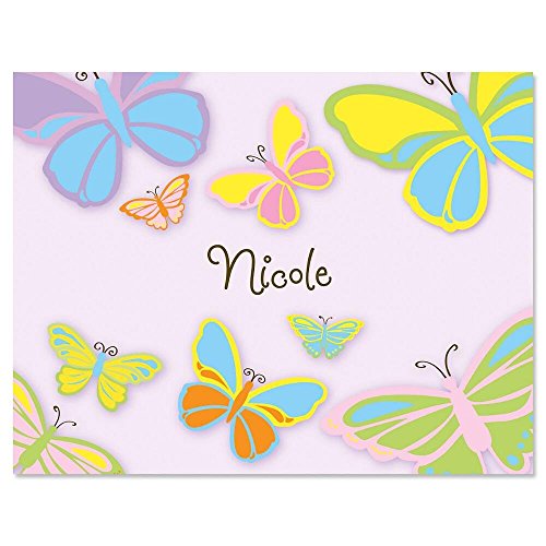 -. Feature : Personalized Note Cards - Set of 24 with white envelopes / Our blank-inside cards are 4 1/4" x 5 1/2", quality stock, and come in a gift package. / Multi-colored butterflies against a soft pastel background will give young ladies an incentive to write special notes to friends and family. / Specify name (1 line), up to 18 characters; ink color and font as shown. / Please Note: We are unable to P.R.Int foreign characters in personalization.