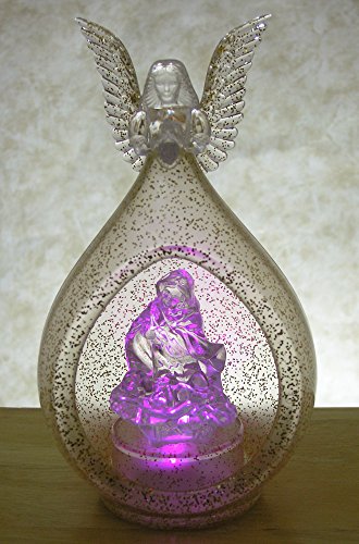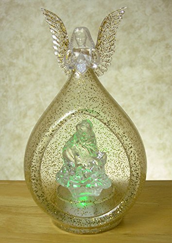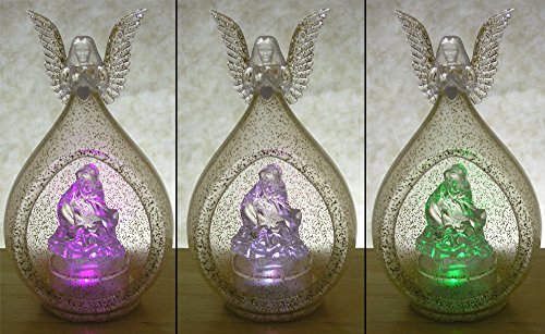 - Feature : Color-Changing LED lighted Acrylic Angel with Holy Family Nativity scene. Angel protects Mary and Baby Jesus. Teardrop shape globe ornament. / An eye catching detailed decoration with the added feature of LED lighting. Glittery translucent acrylic. / SIZE: 7"H x 4"W / Batteries Included. / DECORATIVE USES: Makes a great accessory for any Christmas holiday decor application. Display as a tabletop centerpiece, place on a fireplace mantel, shelf, curio cabinet, bathroom decoration, kitchen, dining or living room decor. UNIQUE GIFT IDEA: give to mom, grandma, sister or friend for Christmas.