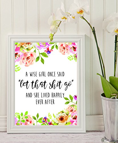 Wise Quote - A wise girl once said "let that shit go", - Inspirational Quote - Quote Print - Floral Print - Printable Décor - College Dorm Room Decorations - Wall Art - funny wall decor