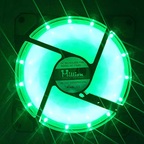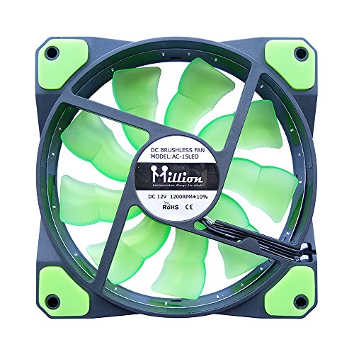 Million 120mm Long Life Sleeve Case 15 PCS LED Silent Fan for Computer Cases, CPU Coolers, and Radiators (Green)
