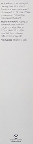 Sensiderm cleansing milk. Indications : soothing cleansing milk. Dissolves sebum, skin impurities and make-up. Avoids dryness. Use : apply and emulsify with wet fingers. Rinse with lukewarm water. Complete with the appropriate G.M. Collin treating lotion. Frequency : morning and evening or as recommended by your skin care professional. Salon professional. 100% genuine. Surface cleansers and make up removers.Feature