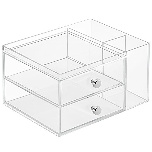 mDesign Cosmetic Organizer for Vanity Cabinet to Hold Makeup, Brushes, Beauty Products - 2 Drawers and Caddy, Clear