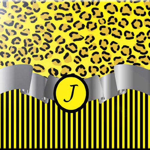 Rikki Knight RK-6intilec-2332 6" X 6" Letter "J" Yellow Leopard Print Stripes Monogram Design Ceramic Art Tile