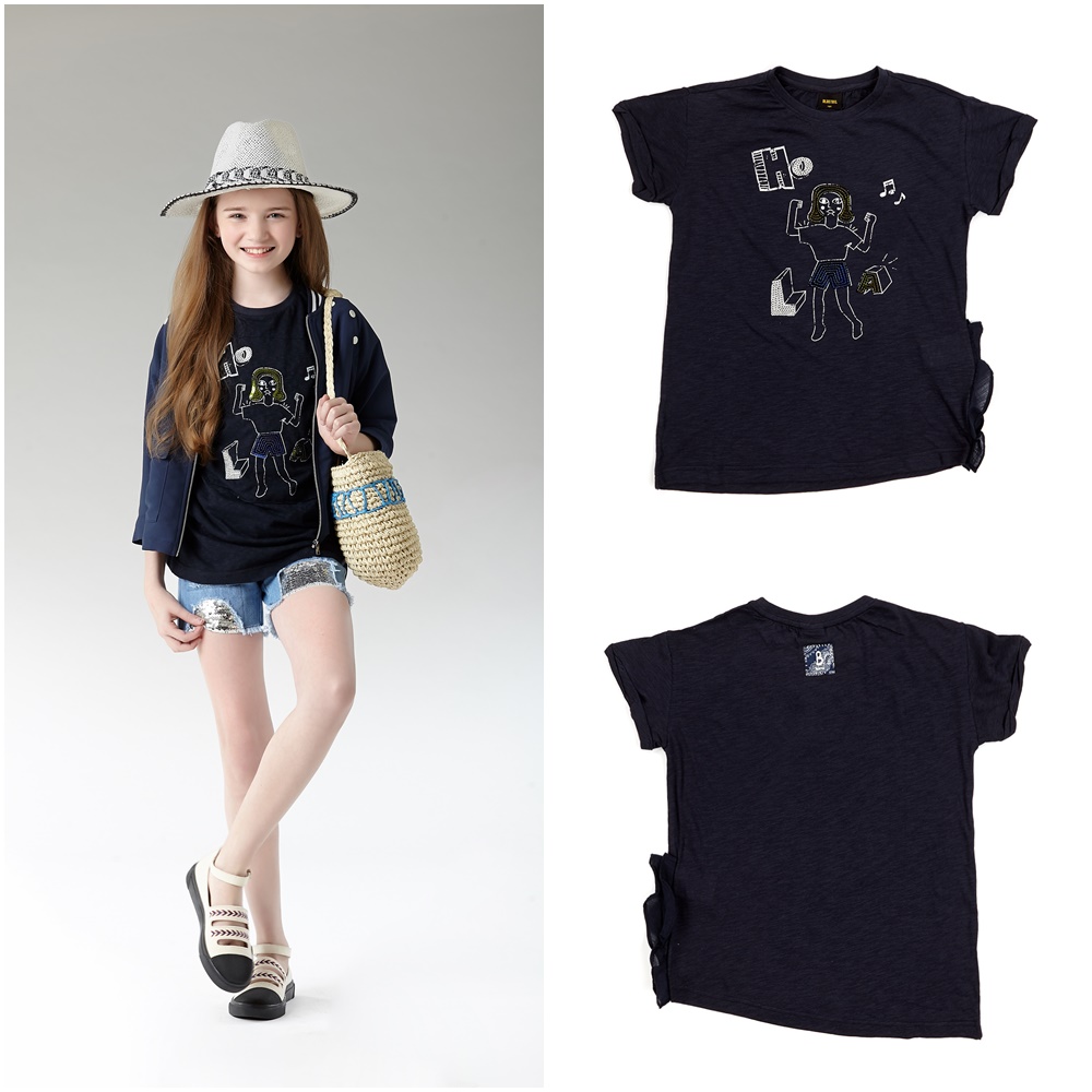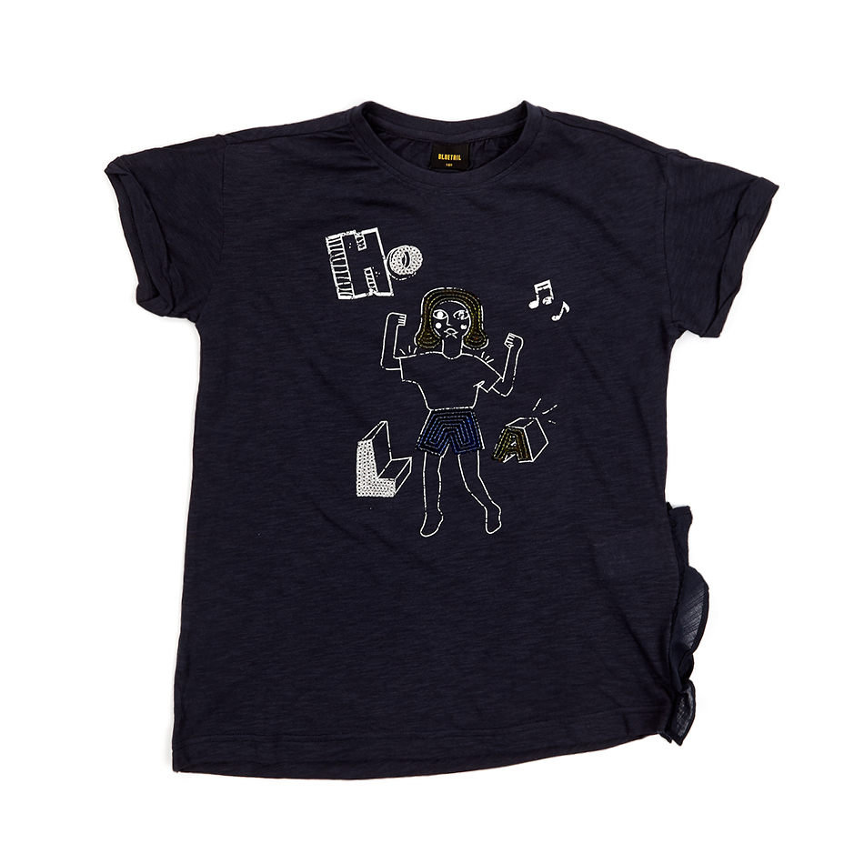 스페인어로 안녕이라는 뜻의 '올라!' 를 외치며 해피하게 춤을 추는 그래픽 나염을 블링블링하게 표현하엿습니다.