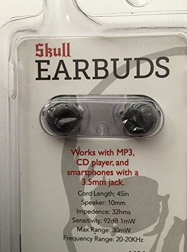 -. Feature : 1 pair of silver colored haunting, spooky Halloween skeleton skull earbuds / Works with smartphones, iPhones, etc., with a 3.5mm jack (included) / Noise reducing and stereo sound / Light and comfortable with curved thin silicone rubber earbuds / Great spooky Halloween accessory!