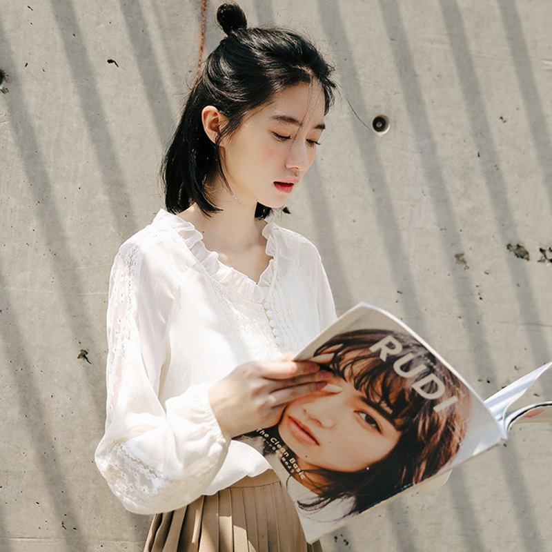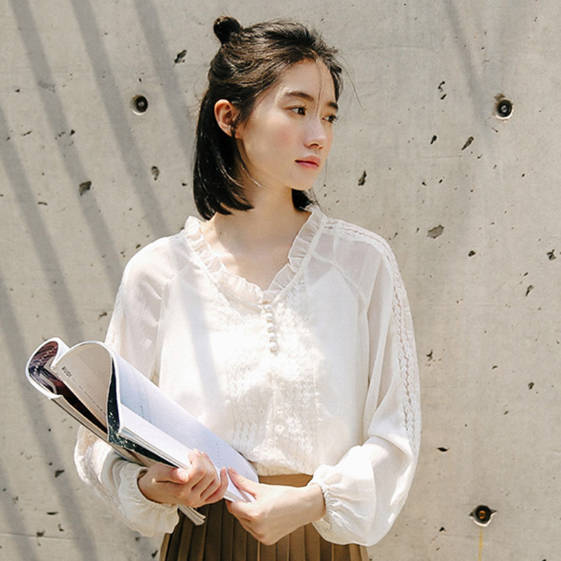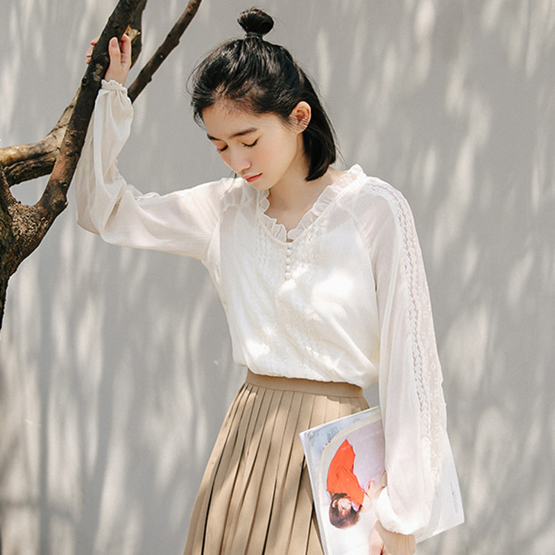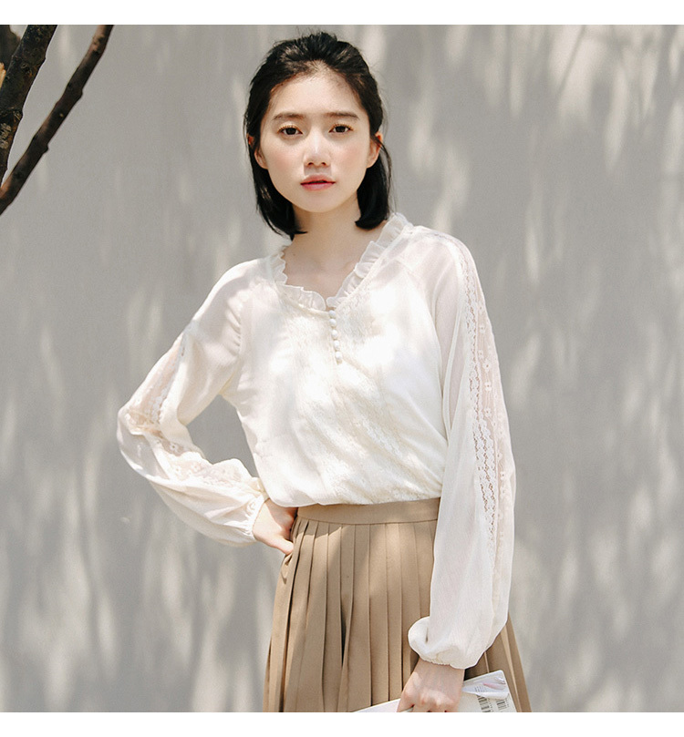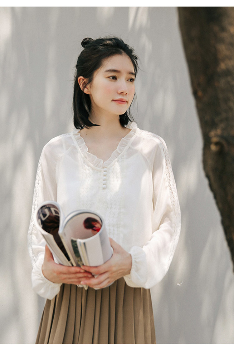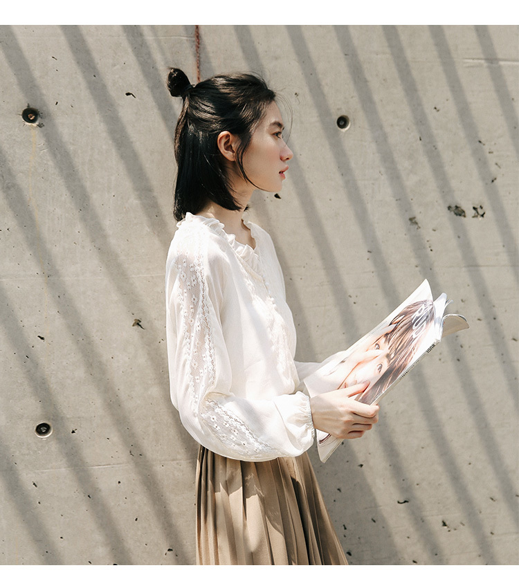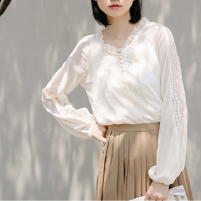 袖口のレースと少しタポッとしたボリューム感がトレンドを意識したポイントに☆